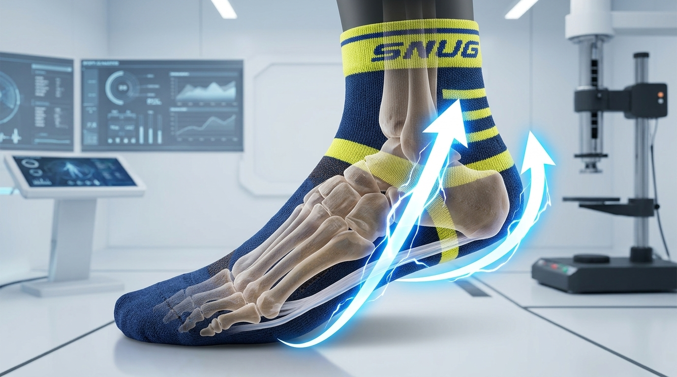 選擇一雙具備足弓支撐、氣墊避震與德國iF設計獎背書的 sNug 運動襪,