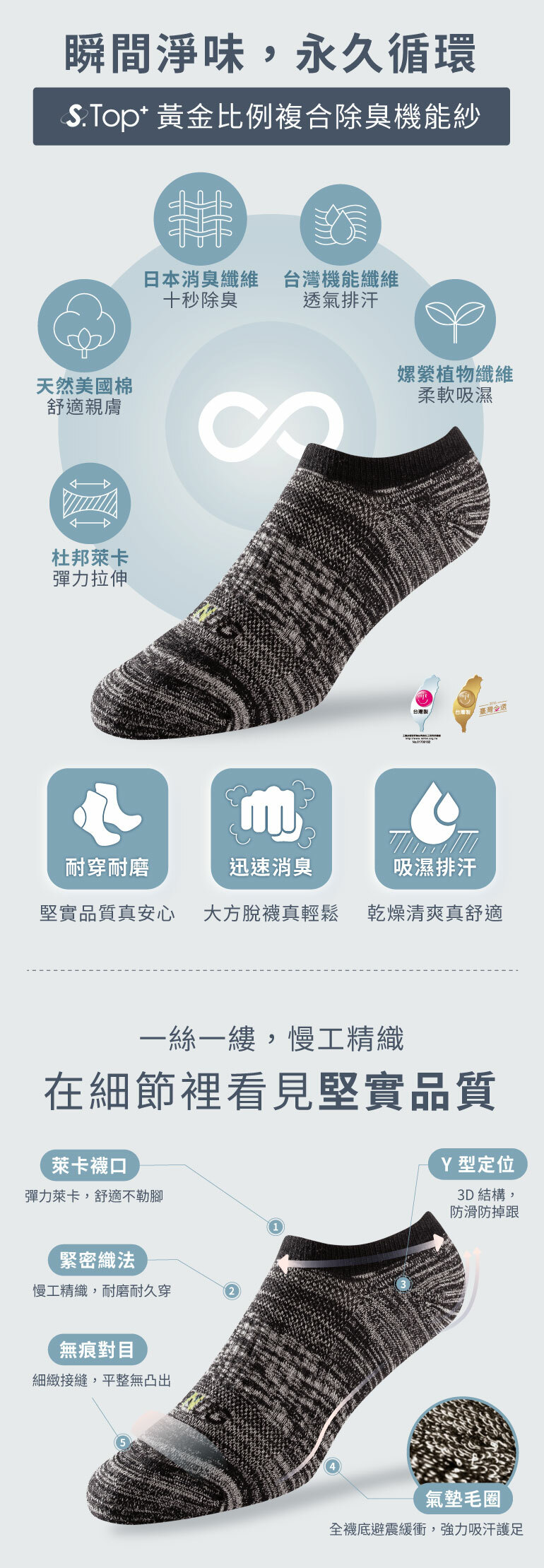 ⭐️成分:棉(S-Top+消臭棉)80%、彈性纖維12% 、尼龍3%、橡膠5%
