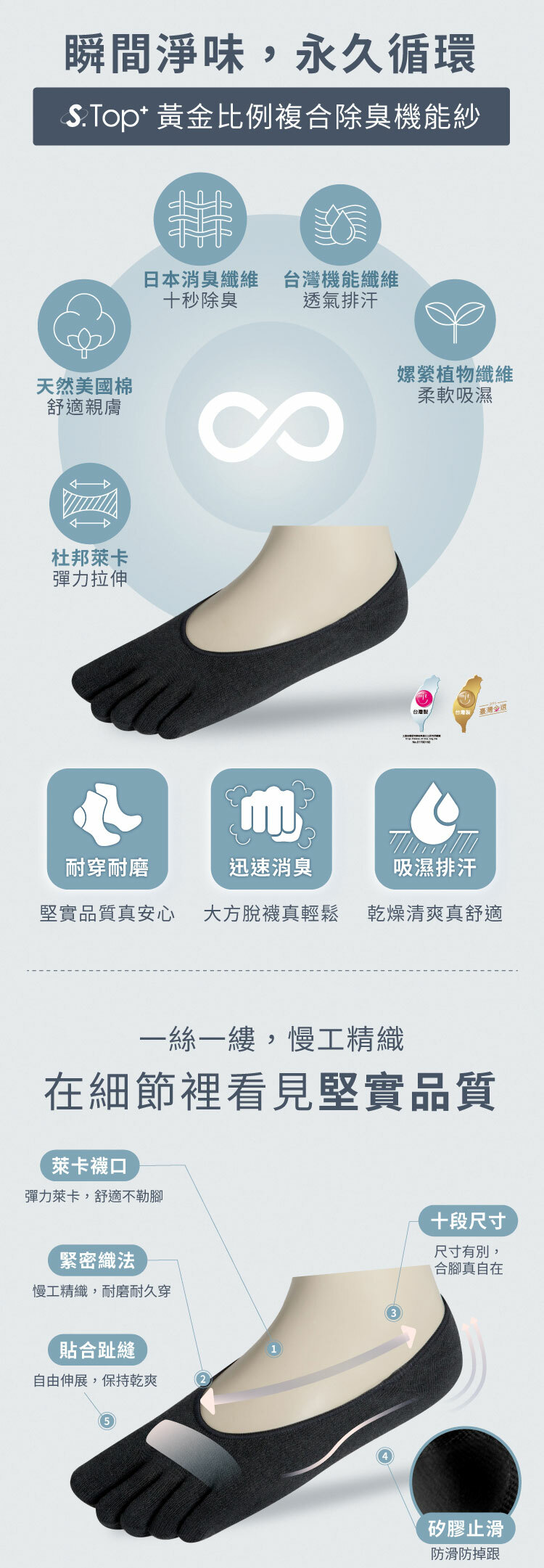 註:五趾隱形襪20-22尺寸,此版為22-24版型偏小,腳長20.5-22cm穿舒適、腳長22.5-25cm稍緊