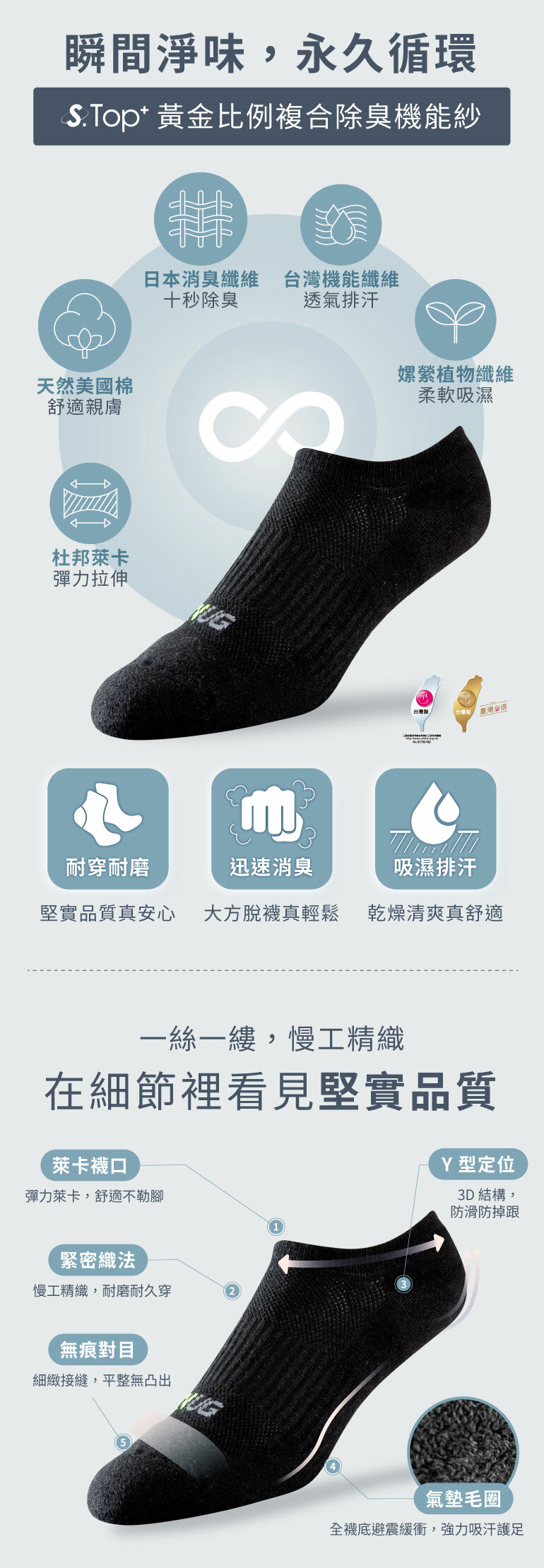 ⭐️成分:棉(S-Top+消臭棉)80%、彈性纖維12% 、尼龍3%、橡膠5%