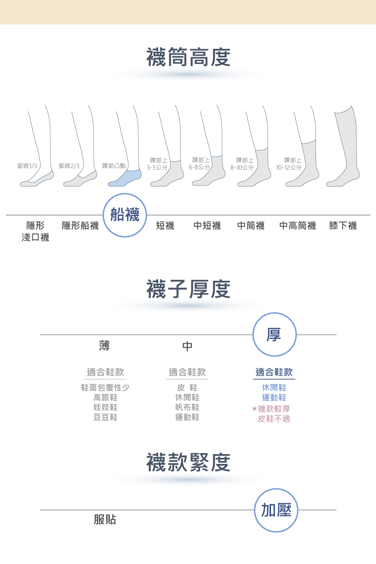 休閒短襪約腳踝上3-5cm,適合搭配穿休閒褲、牛仔褲等等