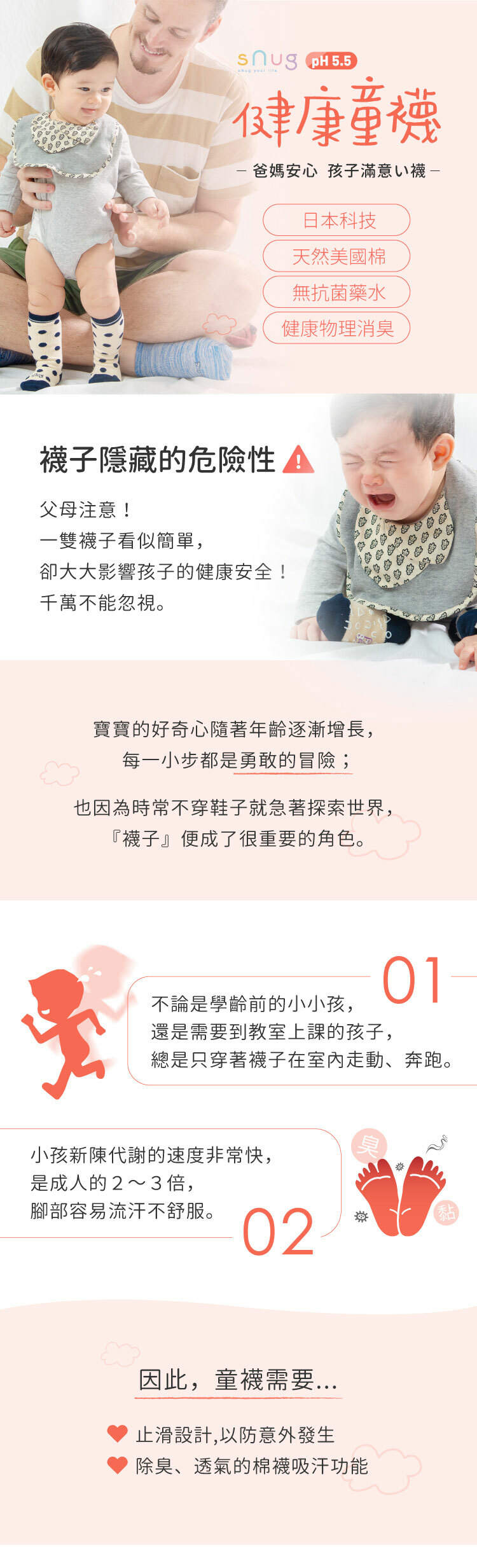 給孩子的第一雙襪,自主送驗CNS15290紡織品安全規範,無甲醛、無偶氮、0有害物質。