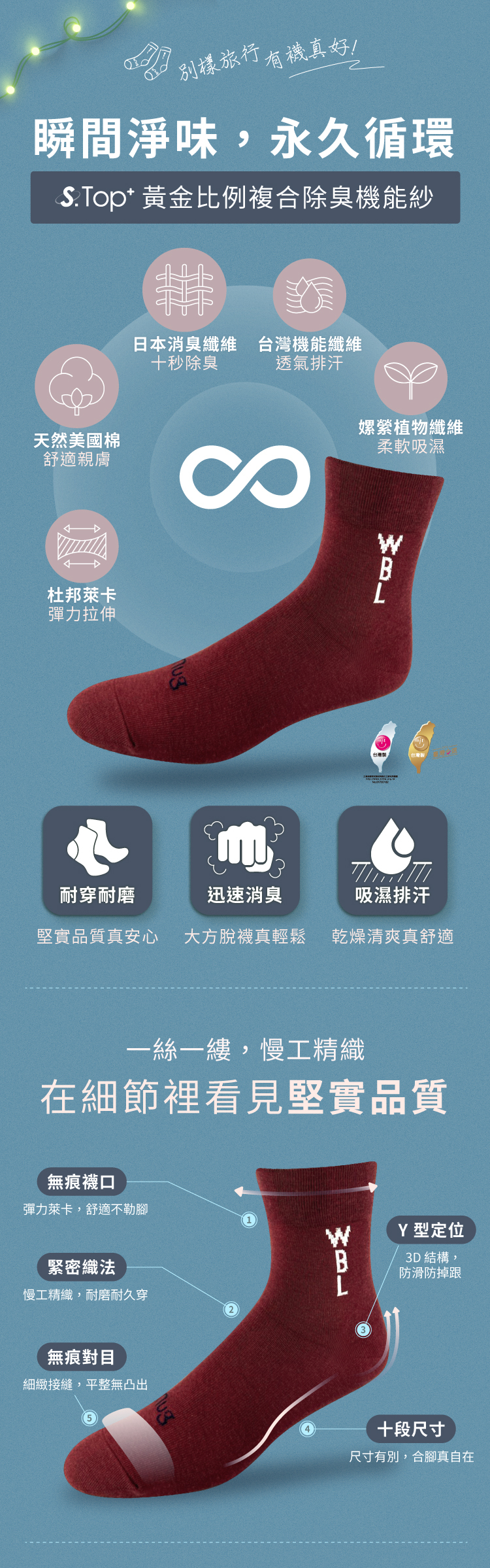 【WBL 微波爐男孩露營清新襪-棗紅】