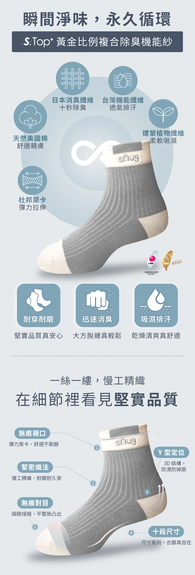 S-TOP+ 瞬淨短襪-文青藍/歌劇院灰 2雙