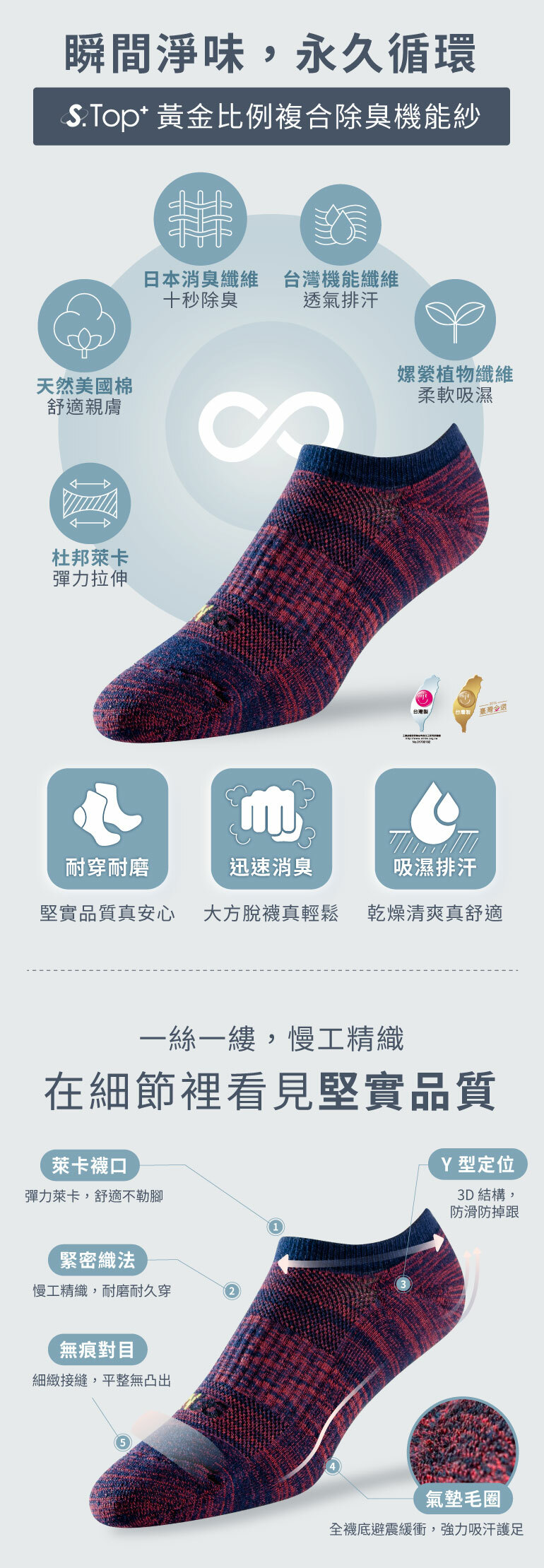 ⭐️成分:棉(S-Top+消臭棉)80%、彈性纖維12% 、尼龍3%、橡膠5%